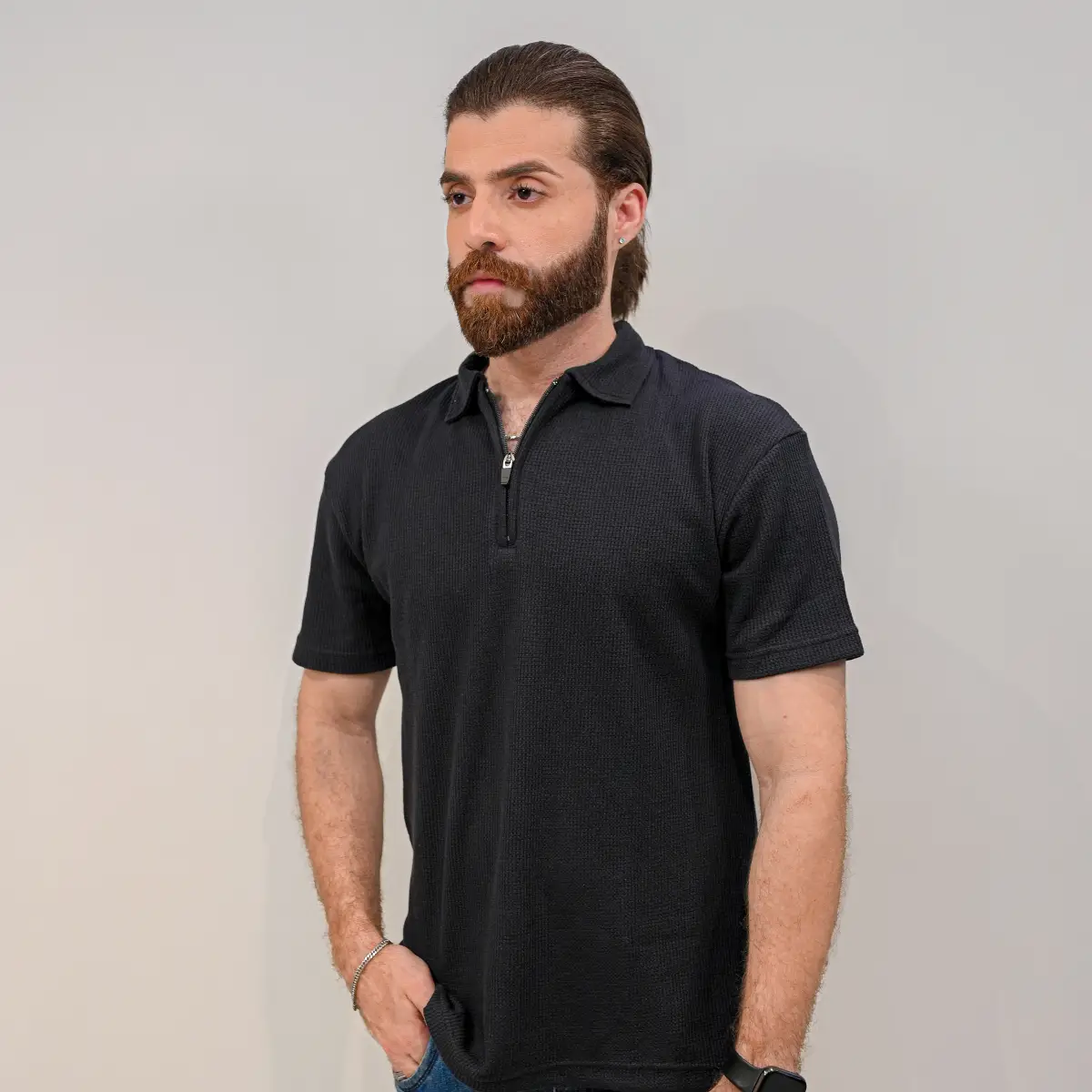 Black – Zipper Polo Knit
