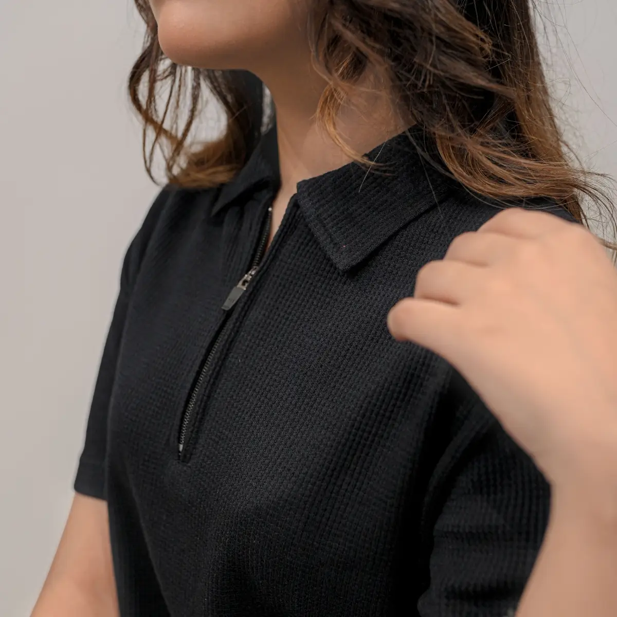 Black – Zipper Polo Knit